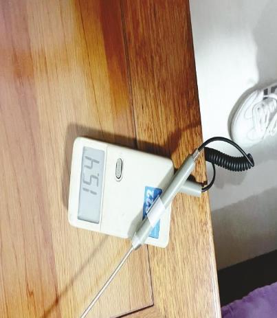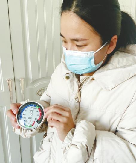 随后,记者跟值班员又走进6号楼6层的杨女士家,她孩子在客厅开着空调上网课,便到其北侧卧室测温,结果显示为13.7℃。“家里温度太低,交着暖气费还要开空调,要不孩子上网课太冷。”
