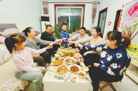 春回大地万象新,欢欢喜喜过大年。1月21日,市开发区春蕾花园居民张康(右三)一家在吃年夜饭。(新华社记者 牟宇 邢台新闻传媒中心记者 陈雷 摄)