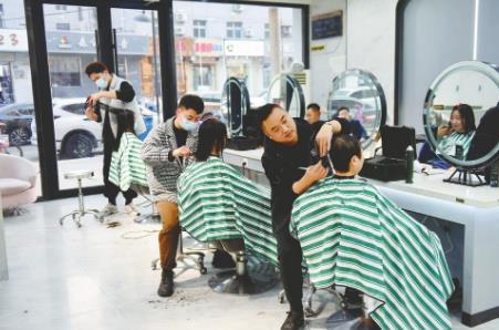 1月19日上午,理发店里座无虚席。春节临近,不少行业迎来了烟火气回归,市民除了置办年货,还选择给自己换个好形象,设计一个靓丽的发型,迎接新的一年。(邢台新闻传媒中心记者 叶晓强摄)