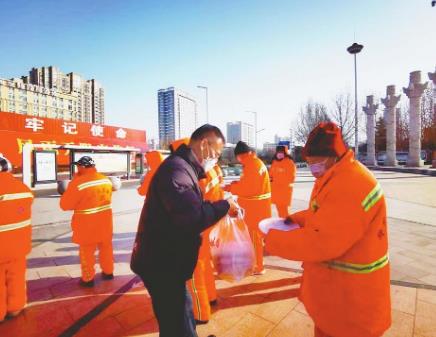 1月21日,农历大年三十,邢台环卫公司相关人员将热气腾腾的饺子送到一线环卫职工手中。据悉,春节期间,该公司3000余名环卫工人将坚守岗位,全力以赴为全市人民打造干净、整洁、祥和的节日环境。(邢台新闻传媒中心记者 刘晓燕 通讯员 张纪钊 摄)