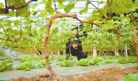 近年来,柏乡县积极探索推广“果蔬套种”模式,在葡萄树下套种甘蓝、蒜苗、菠菜等作物,利用作物成熟时间差,提高土地复种指数,实现土地资源利用最大化,促进农作物产能增效、农民增收。