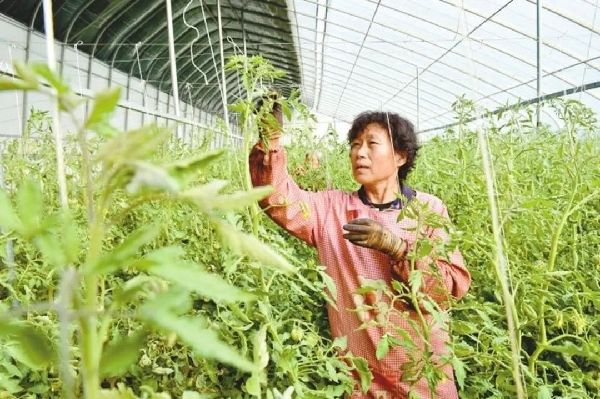 ↑图 日前,襄都区新野河村的农户在大棚中给西红柿辅助授粉。襄都区大力发展高效设施农业,引导农民因地制宜发展蔬菜、瓜果等特色果蔬种植,促进农民增收,助力乡村振兴。(邱洪生摄)