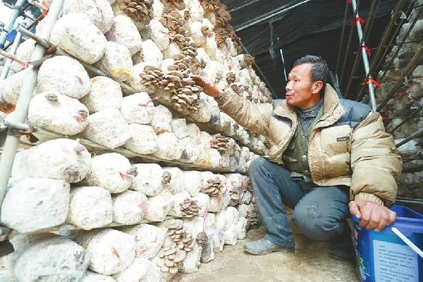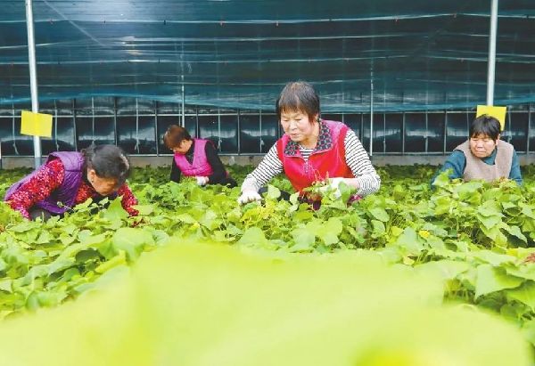 ↑图 近日,在邢台经济开发区善南村,农民正在采收蘑菇。邢台经济开发区积极调整种植结构,发展特色种植,促进农业增效、农民增收。(李义厚 摄)