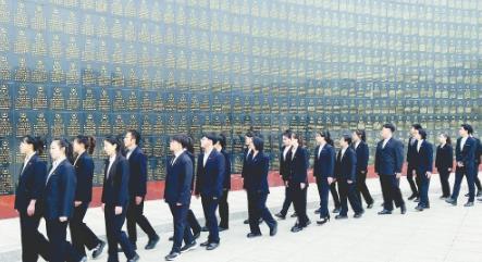 当日9时,全体人员整齐列队,奏唱《中华人民共和国国歌》,向革命烈士默哀,并敬献花篮。