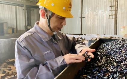 5月2日一早,中钢集团邢台机械轧辊有限公司铸铁分厂配料班班长陈立峰准时走入配料间,打开平板电脑上记录的数据,与现场配料进行再核对;使用金属成分检测仪,对废料进行抽检;核对上料配料盘区域记录的内容……