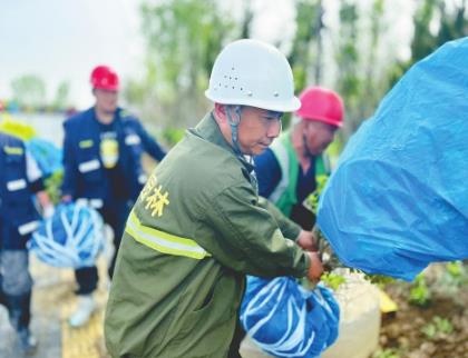 5月1日7时,在我市小黄河团结桥南侧,河道职工孟振兴正穿戴救生衣,准备上船打捞……