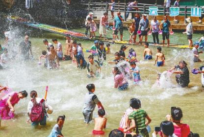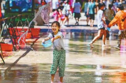 泼水,不论是“社牛”还是“社恐”,面对劈头盖脸的山泉水“问候”,只能奋起舀水予以回击。“泼水节的形式释放天性,非常解压,平时要守规矩,遵礼仪,懂礼貌,别说小孩儿,大人都有点喘不过气。”游客吴女士认为,在泼水节上,每个大人都可以当回小孩子。