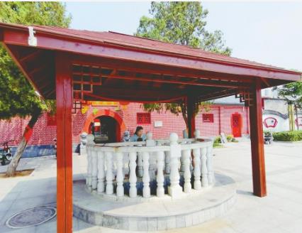 走进亭内,扶着石栏朝下看,半月形状的井内,一池碧水清可见底,五彩的小鱼徜徉其间。井壁由青砖砌成,透过清澈的井水可以看到,北侧井壁上伸出一个石雕狮子头。“水就是从石狮子的嘴里流出来的。”村民老张介绍,井内水少的时候能看到有名的“狮子流水”,现在水深,石狮子没在水底便看不出来了。