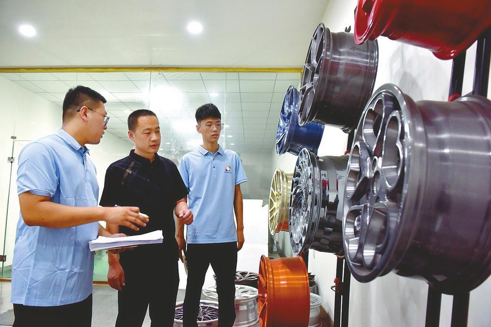 日前,威县企业服务中心工作人员深入一家轮毂企业了解用工情况。