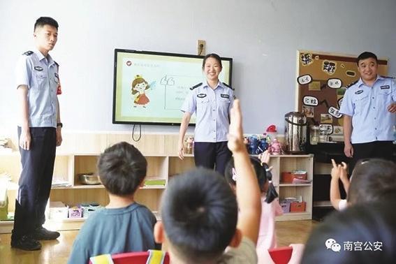 本报讯“小朋友,上学校,遇到生人来问路,礼貌笑笑快走掉……”为进一步提升幼儿防拐骗意识和自我保护能力,让他们知道如何更好地保护自己,9月22日上午,南宫市公安局苏村中心派出所走进幼儿园,开展反拐骗安全宣讲活动。