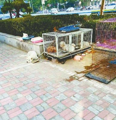 现场走访:10月19日,记者来到现场走访,在泉北大街与公园东街交叉口的西北侧有家宠物店,其门前的便道上摆放着多种宠物用品,还有几个宠物笼子,笼子里关着一只狗,笼子外还拴着一只狗,犬吠声不断。路过的陈女士告诉记者,孩子每次从此路过都很害怕,“旁边也有几家宠物店,人家就没把狗放在店外。而且宠物狗栓在路边既有安全隐患,也不卫生。”