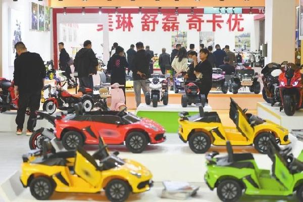 10月26日,客商在博览会现场选购商品。当日,第十六届中国·北方(平乡)国际自行车童车玩具博览会在河北省平乡县开幕。本届博览会设展位2700余个,吸引来自俄罗斯、哈萨克斯坦、乌兹别克斯坦等10余个国家和地区的客商参会。
